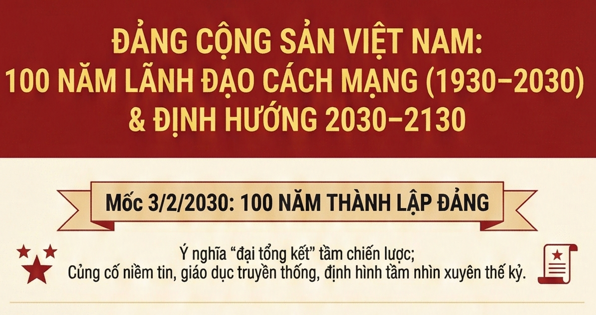 Infographic: Tổng kết 100 năm Đảng lãnh đạo cách mạng Việt Nam (1930-2030) và 40 năm thực hiện Cương lĩnh xây dựng đất nước trong thời kỳ quá độ lên chủ nghĩa xã hội