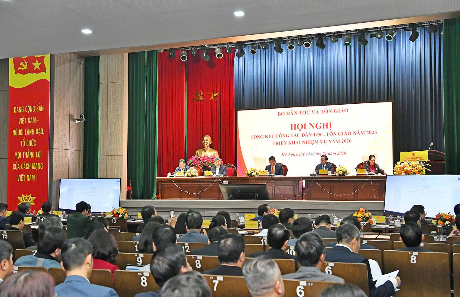 Sáng 14/01/2026, Hội nghị Tổng kết công tác dân tộc, tôn giáo năm 2025 và triển khai nhiệm vụ năm 2026 diễn ra tại trụ sở Bộ Dân tộc và Tôn giáo, 349 Đội Cấn, phường Ngọc Hà, Thành phố Hà Nội.