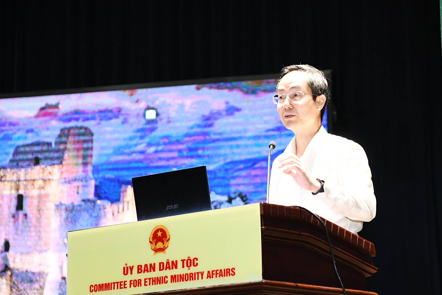Đồng chí Cầm Văn Thanh, Phó Bí thư Đảng bộ, Vụ trưởng Vụ Tổng hợp UBDT phát biểu chỉ đạo tại buổi tập huấn