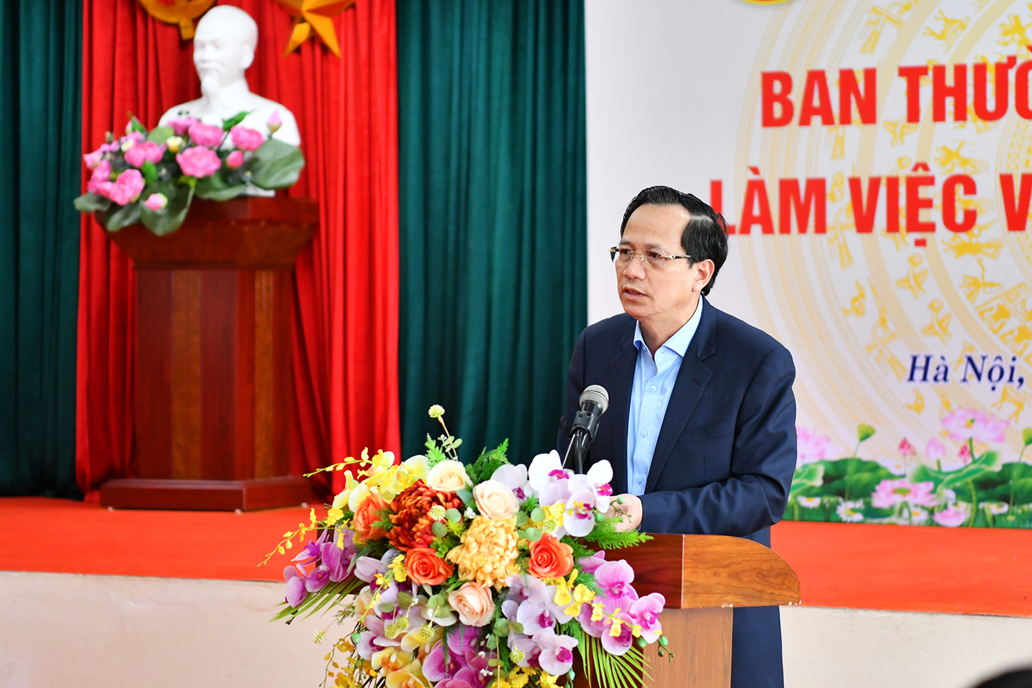 Bí thư Đảng ủy, Bộ trưởng Bộ Dân tộc và Tôn giáo Đào Ngọc Dung phát biểu chỉ đạo cuộc họp