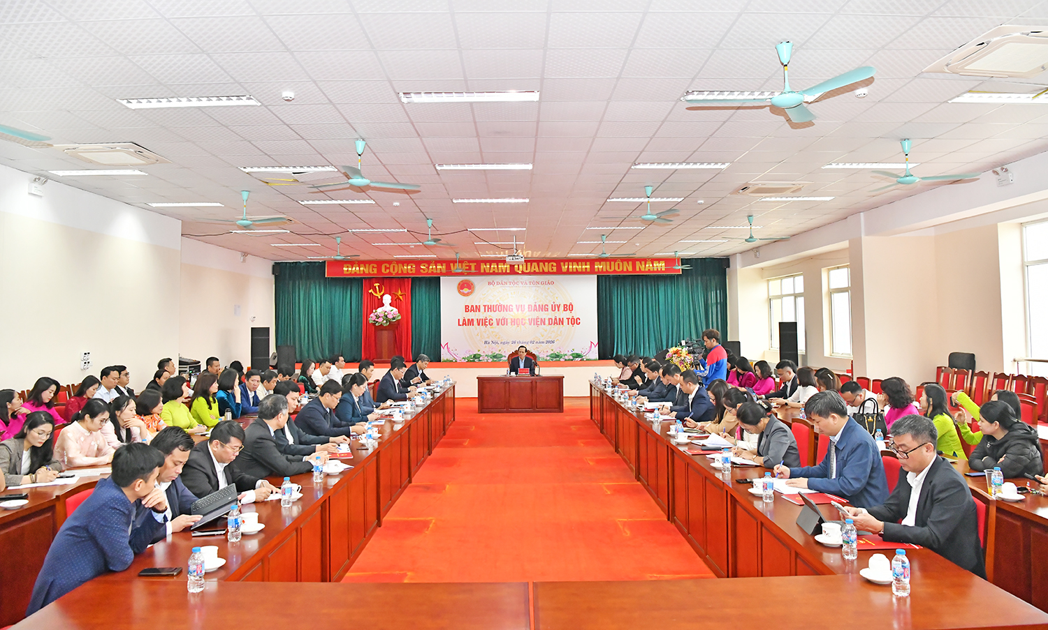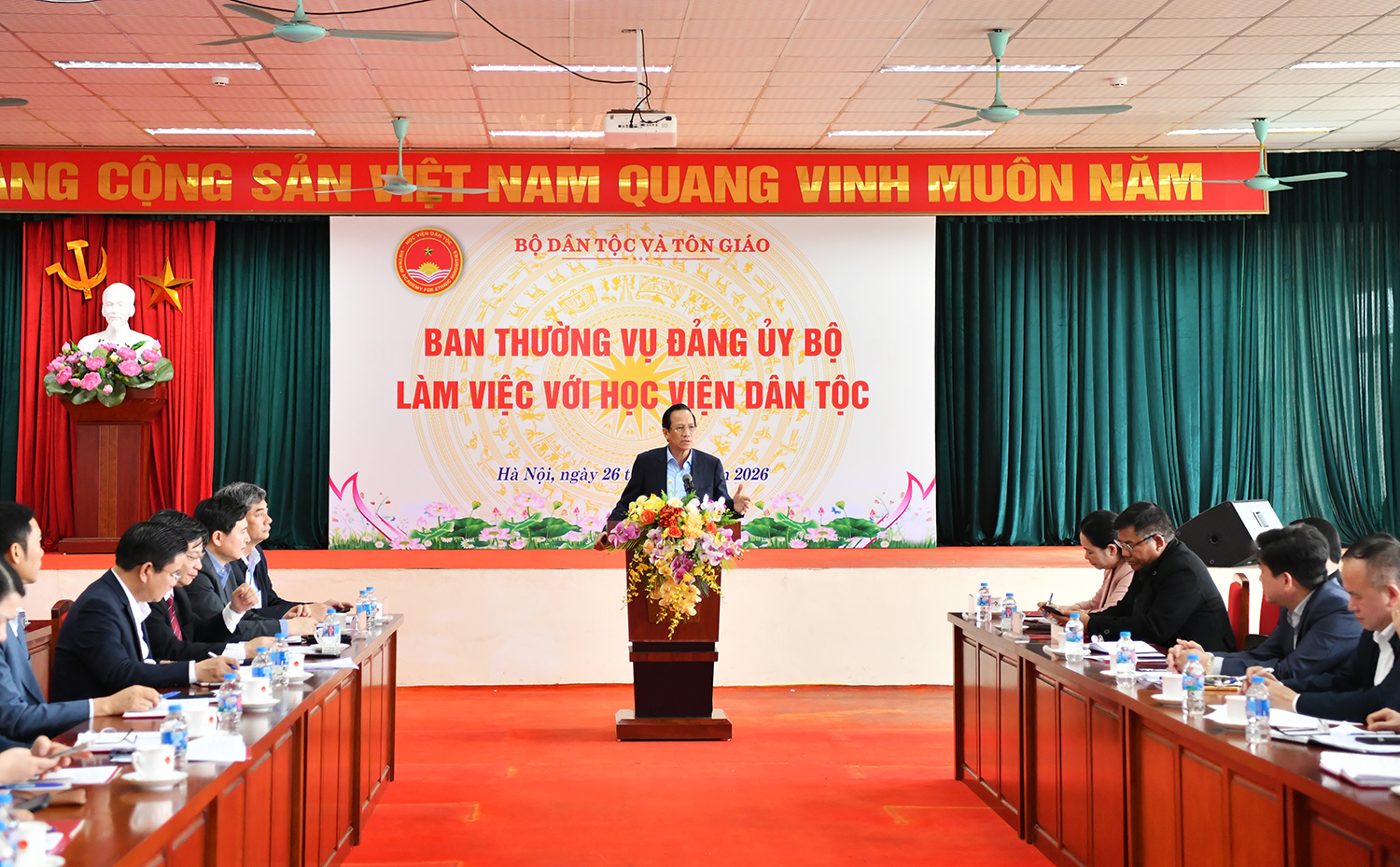 1 giờ trước | Lượt xem: 23 In bài viết |Ngày 26/02, tại Hà Nội, Ban Thường vụ Đảng ủy Bộ Dân tộc và Tôn giáo đã có buổi làm việc với Học viện Dân tộc về tình hình hoạt động của Học viện trong thời gian qua. Bí thư Đảng ủy, Bộ trưởng Bộ Dân tộc và Tôn giáo Đào Ngọc Dung chủ trì buổi làm việc.