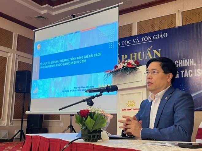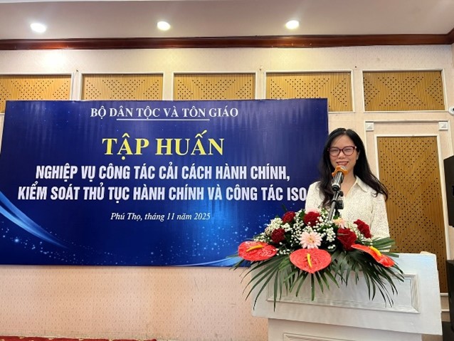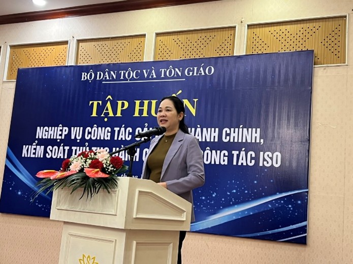 Lớp tập huấn nhằm trang bị, cập nhật các chủ trương, định hướng mới của Chính phủ về Chương trình tổng thể cải cách hành chính nhà nước giai đoạn 2021-2030 và công tác kiểm soát thủ tục hành chính; đồng thời, chia sẻ những giải pháp thực tiễn, các kỹ năng nghiệp vụ chuyên sâu về chuẩn hóa quy trình ISO và tái cấu trúc dữ liệu số. Qua đó, nâng cao năng lực và trách nhiệm công vụ của đội ngũ lãnh đạo, công chức, viên chức, đồng thời, thống nhất nhận thức, đổi mới tư duy hành chính từ “quản lý” sang “phục vụ”, tạo sự đồng thuận và quyết tâm cao trong việc tháo gỡ các “điểm nghẽn” về thể chế, thủ tục hành chính nội bộ, góp phần cải thiện bền vững chỉ số cải cách hành chính của Bộ Dân tộc và Tôn giáo.