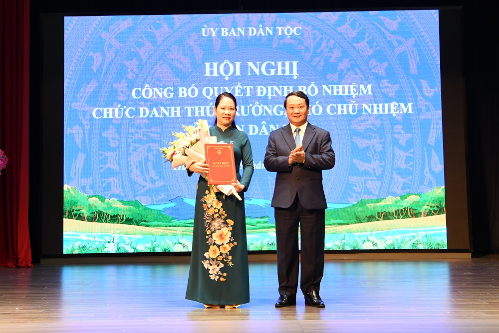 Thừa ủy quyền của Thủ tướng Chính phủ, Bộ trưởng, Chủ nhiệm Hầu A Lềnh đã trao Quyết định của Thủ tướng Chính phủ bổ nhiệm chức danh Thứ trưởng, Phó Chủ nhiệm UBDT cho bà Nông Thị Hà.