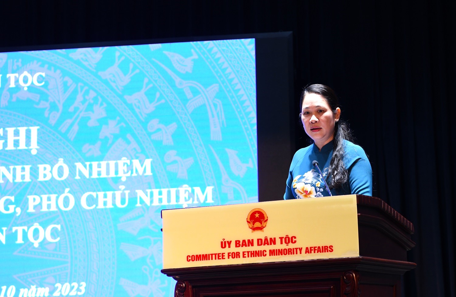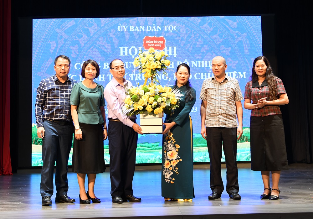 06:00 PM 19/10/2023 | Lượt xem: 5956 In bài viết |Chiều 19/10, tại trụ sở cơ quan, Ủy ban Dân tộc (UBDT) trang trọng tổ chức Hội nghị công bố Quyết định của Thủ tướng Chính phủ bổ nhiệm bà Nông Thị Hà, Ủy viên Ban Thường vụ Tỉnh ủy, Trưởng Ban Nội chính Tỉnh ủy Cao Bằng giữ chức danh Thứ trưởng, Phó Chủ nhiệm UBDT.