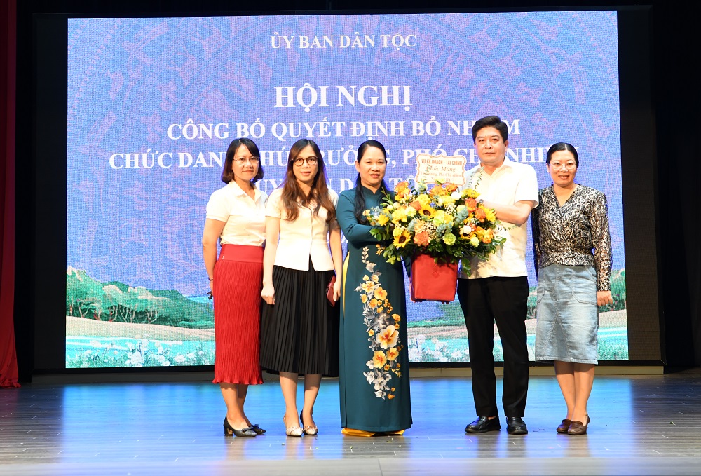 Thừa ủy quyền của Thủ tướng Chính phủ, Bộ trưởng, Chủ nhiệm Hầu A Lềnh đã trao Quyết định số 1175/QĐ-TTg cho đồng chí Nông Thị Hà. Bộ trưởng, Chủ nhiệm Hầu A Lềnh đã thay mặt Ban Cán sự Đảng, Lãnh đạo Ủy ban và toàn thể cán bộ, công chức, viên chức UBDT chúc mừng đồng chí Nông Thị Hà đã được Bộ Chính trị, Ban Bí thư, Chính phủ, Thủ tướng Chính phủ tin tưởng, bổ nhiệm giữ chức vụ Thứ trưởng, Phó Chủ nhiệm UBDT.