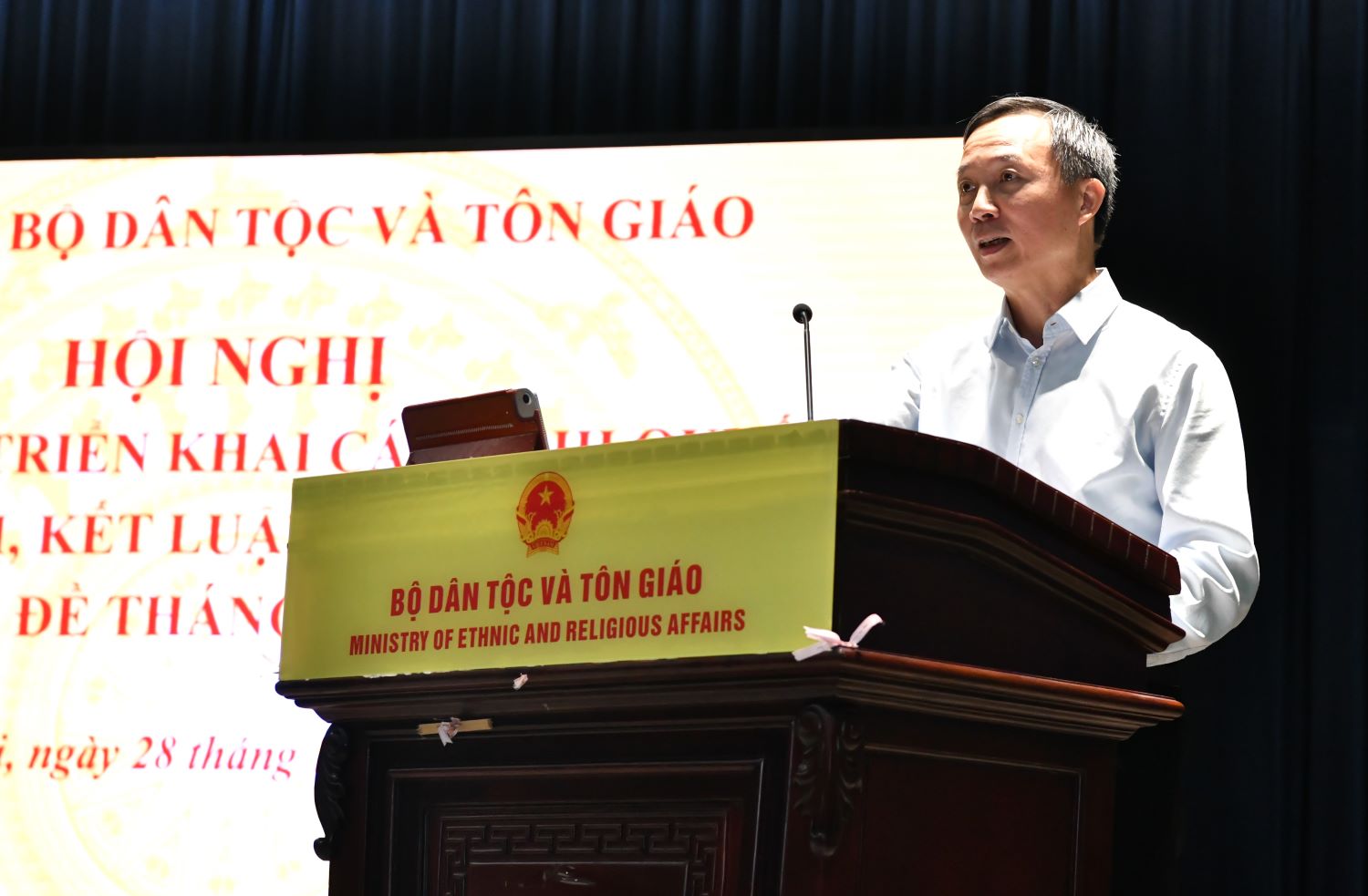 Cũng tại Hội nghị, đồng chí Vũ Hoài Bắc, Ủy viên Ban Chấp hành Đảng bộ, Trưởng ban Ban Tôn giáo Chính phủ báo cáo chuyên đề tháng 11/2025 với nội dung “một số vấn đề đặc thù về tôn giáo trong vùng đồng bào dân tộc thiểu số. Trong đó, thông tin một số chủ trương, chính sách của Đảng về vấn đề tôn giáo trong đồng bào dân tộc thiểu số, vấn đề người Mông theo đạo Tin Lành ở các tỉnh miền núi phía Bắc và khu vực Tây Nguyên, đồng bào Khmer ở Nam Bộ, các vấn đề cần quan tâm trong hoạt động tôn giáo vùng đồng bào dân tộc thiểu số…