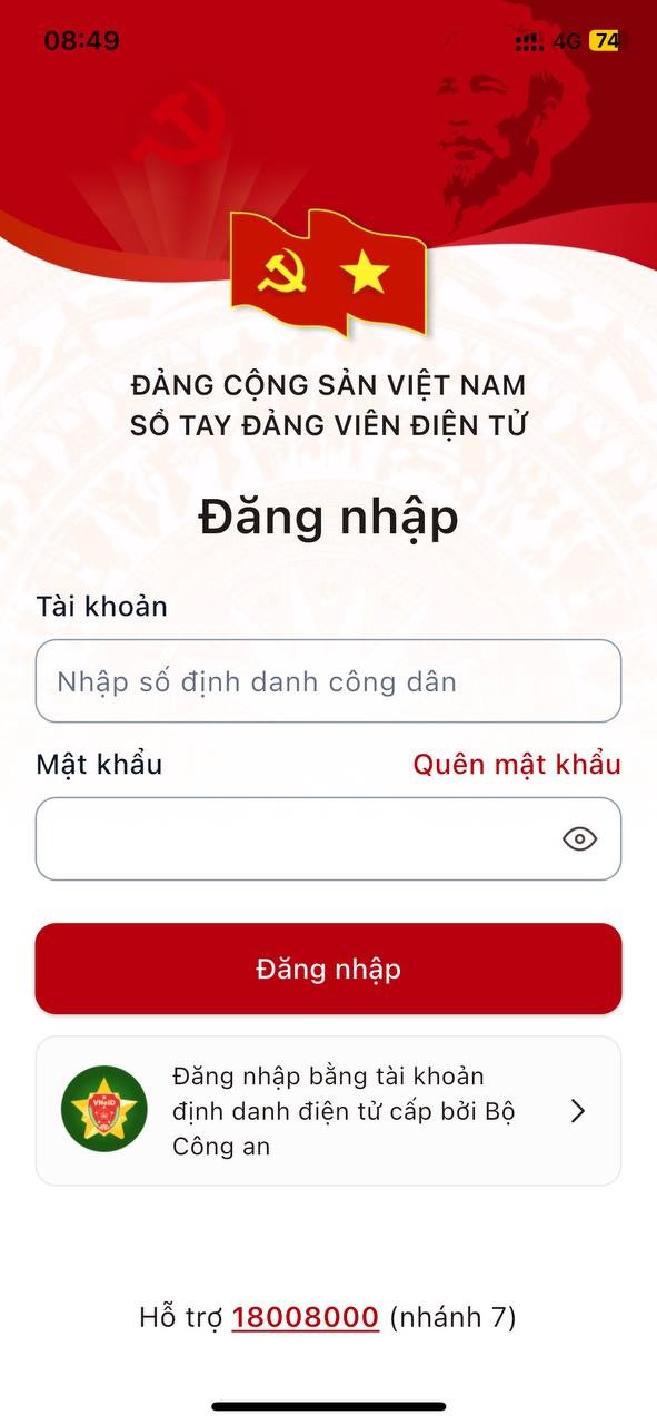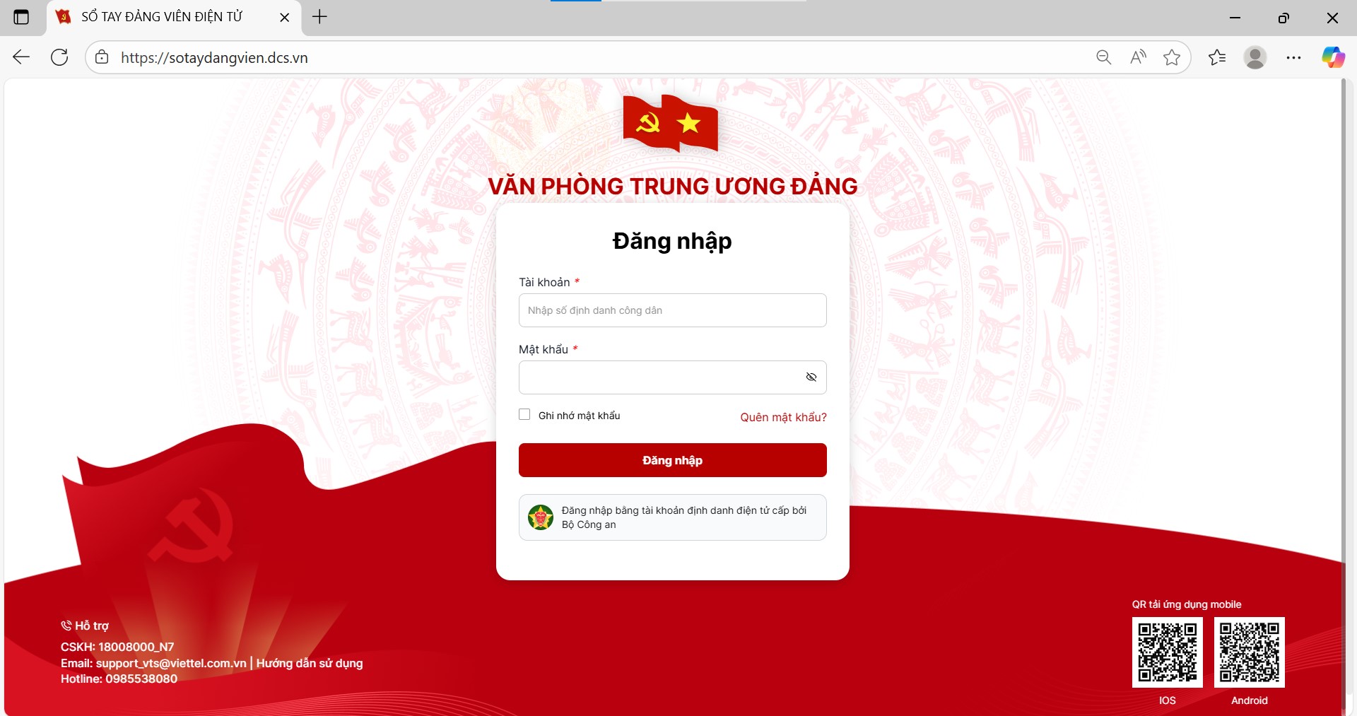 Đảng viên truy cập vào trang đăng nhập hệ thống https://sotaydangvien.dcs.vn