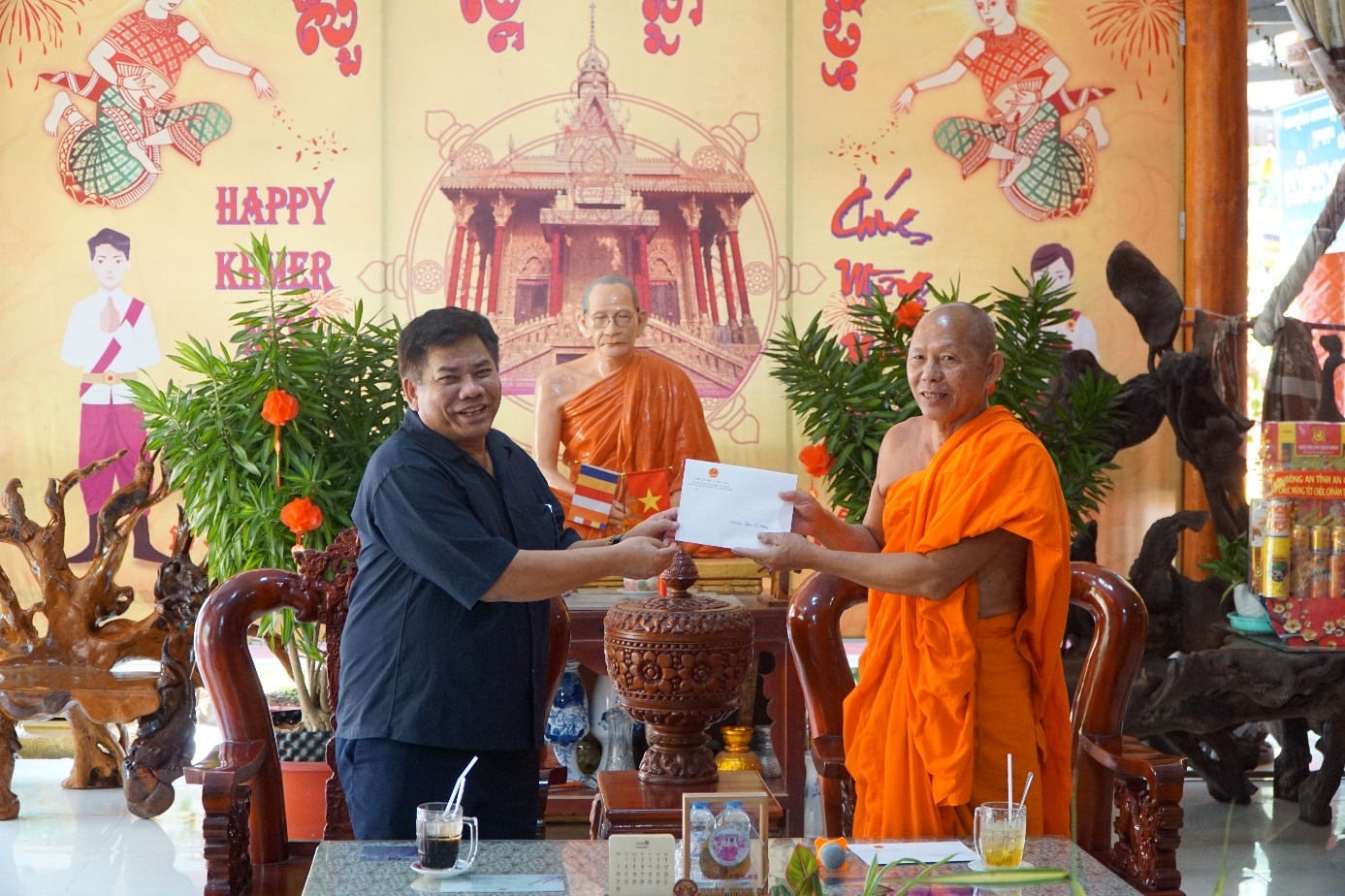 Trong không khí rộn ràng của những ngày lễ hội, Thứ trưởng đã ân cần thăm hỏi sức khỏe, đời sống của các vị sư sãi, chức sắc cùng bà con Khmer, đồng thời gửi lời chúc năm mới an khang, thịnh vượng và tiết kiệm đến toàn thể cộng đồng dân tộc Khmer trên địa bàn.