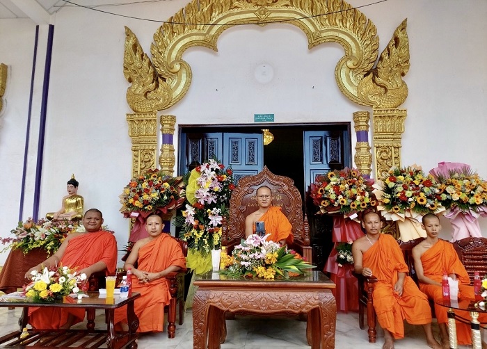 Đại đức Lý Phét (ở giữa) và các vị sư ở chùa Serey Kandal rất tâm quyết với các lớp dạy chữ khmer