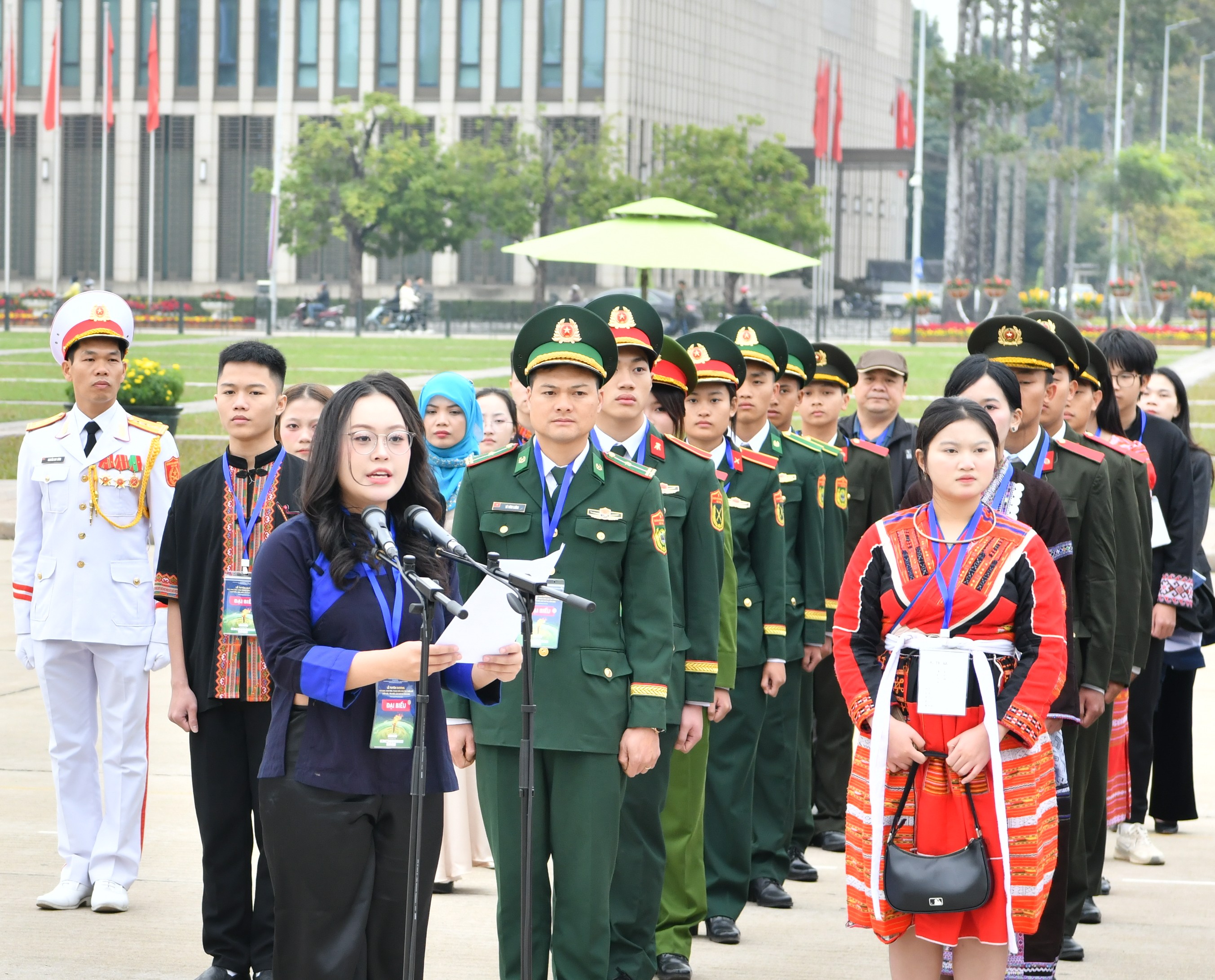1 ngày trước | Lượt xem: 31 In bài viết |Ngày 27/12/2025, tại Lăng Chủ tịch Hồ Chí Minh, đoàn học sinh, sinh viên, thanh niên dân tộc thiểu số (DTTS) tiêu biểu, xuất sắc từ khắp mọi miền đất nước đã về làm lễ báo công dâng Bác và vào viếng Chủ tịch Hồ Chí Minh.