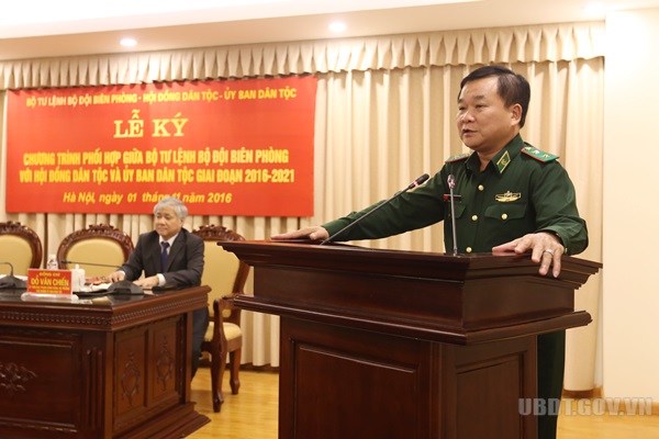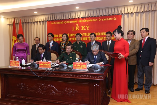 Thay mặt Lãnh đạo ba cơ quan, đồng chí Hà Ngọc Chiến, Chủ tịch HĐDT của Quốc hội; đồng chí Đỗ Văn Chiến, Bộ trưởng, Chủ nhiệm UBDT; Trung tướng Hoàng Xuân Chiến, Ủy viên BCH Trung ương Đảng, Ủy viên Quân ủy Trung ương, Tư lệnh Bộ đội biên phòng đã ký Chương trình phối hợp công tác giai đoạn 2016 – 2021.