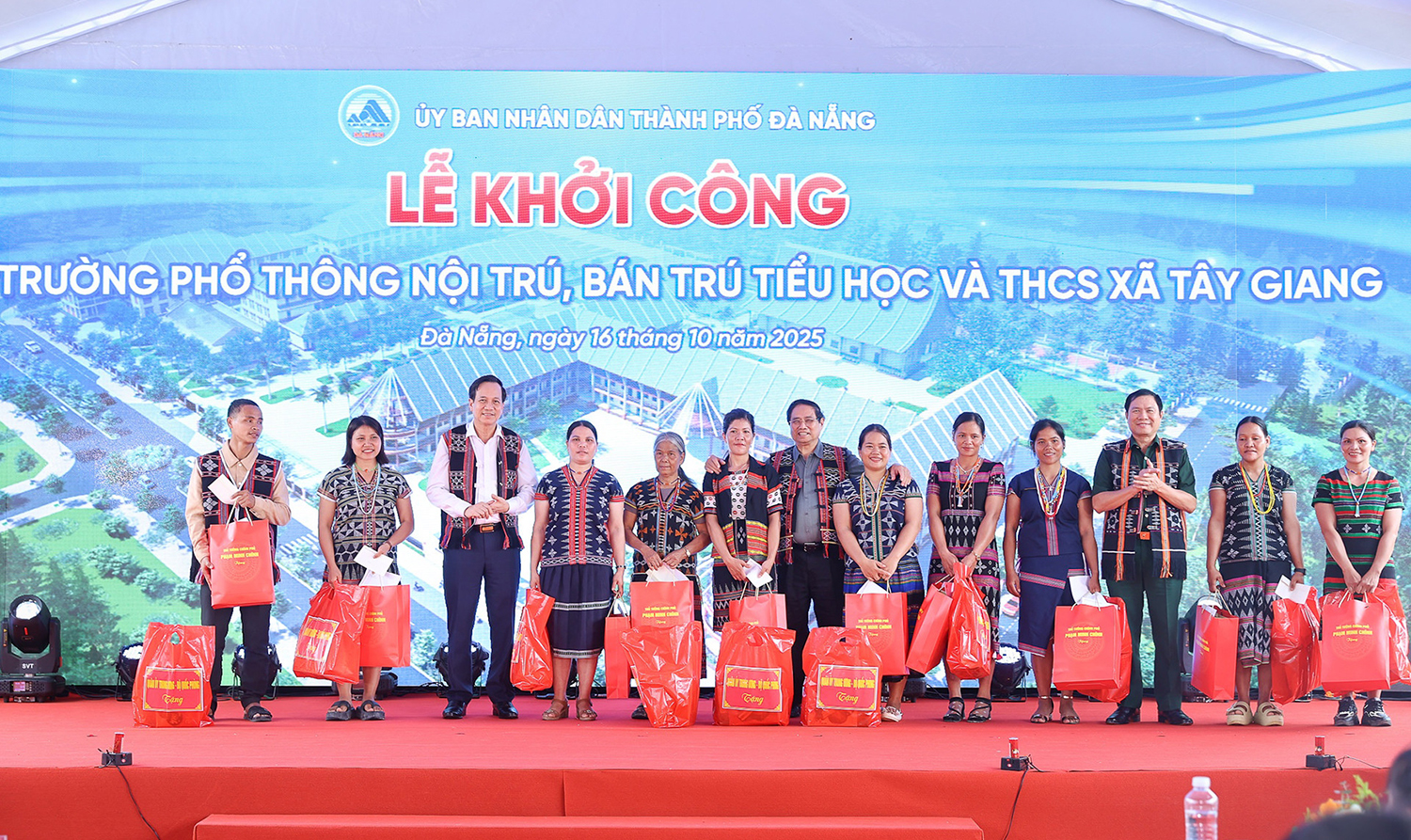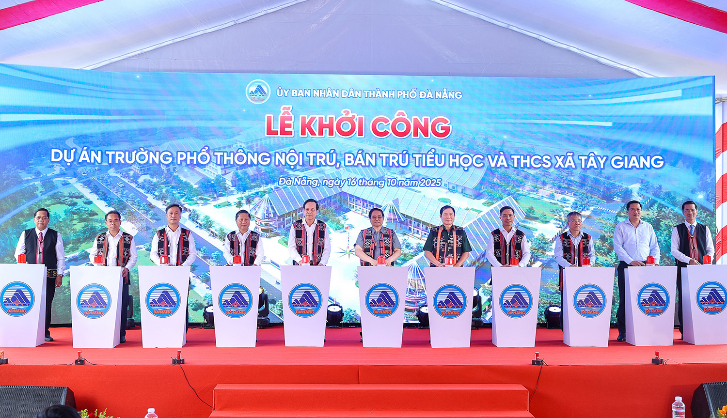 1 ngày trước | Lượt xem: 75 In bài viết |Chiều 16/10, Ủy viên Bộ Chính trị, Thủ tướng Chính phủ Phạm Minh Chính dự lễ khởi công dự án xây dựng Trường Phổ thông Nội trú, Bán trú Tiểu học và Trung học cơ sở Tây Giang - xã miền núi biên giới phía tây giáp Lào, cách trung tâm thành phố Đà Nẵng khoảng 120 km về phía tây.