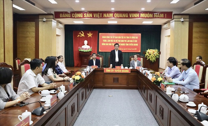 Vừa qua, tại tỉnh Hà Giang và tỉnh Tuyên Quang, Đoàn công tác của Ủy ban Dân tộc và tỉnh Đồng Nai do Ủy viên Ban Chấp hành Trung ương Đảng, Bí thư Tỉnh ủy Đồng Nai Nguyễn Hồng Lĩnh và Ủy viên dự khuyết Ban Chấp hành Trung ương Đảng, Thứ trưởng, Phó Chủ nhiệm Ủy ban Dân tộc Y Vinh Tơr làm Trưởng đoàn đã đến thăm, làm việc, trao hỗ trợ kinh phí làm nhà ở cho đồng bào DTTS nghèo tỉnh Hà Giang, Tuyên Quang. Tham gia Đoàn công tác có lãnh đạo Báo Dân tộc và Phát triển (UBDT) và lãnh đạo một số sở, ban, ngành tỉnh Đồng Nai.