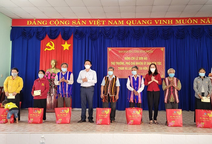 Nhân dịp năm mới Nhâm Dần 2022, Thứ trưởng, Phó Chủ nhiệm UBDT Lê Sơn Hải chúc Tết đồng bào DTTS trên địa bàn tỉnh Bình Phước, mong muốn đồng bào sử dụng hiệu quả sự hỗ trợ của Nhà nước, đồng thời tiếp tục phát huy vai trò chủ động, sáng tạo để không ngừng nâng cao chất lượng cuộc sống.