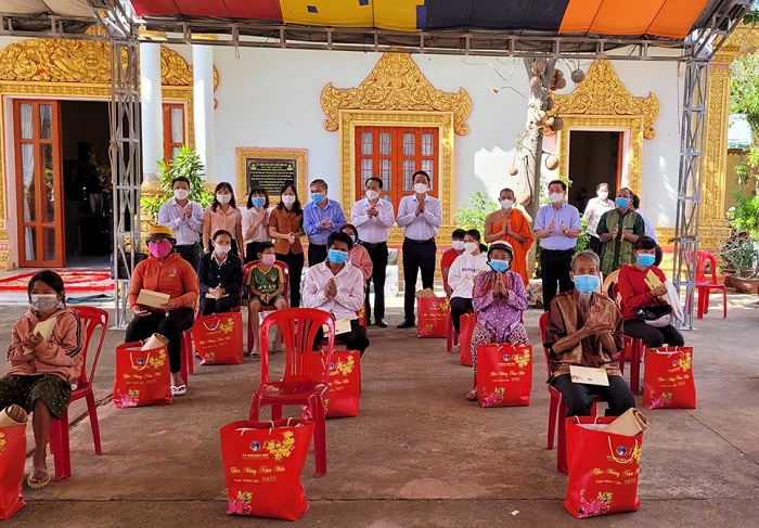Cùng ngày, đoàn đã đi thăm và tặng quà 20 hộ nghèo, khó khăn, gia đình chính sách người DTTS, già làng tiêu biểu, Người có uy tín trong đồng bào DTTS tại chùa Sreyvonsa, TP. Đồng Xoài.