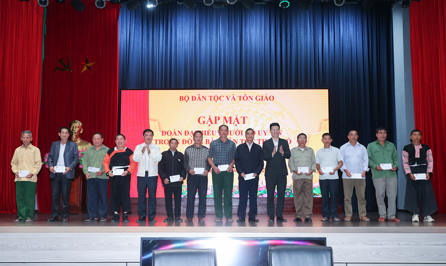 Nhân dịp Đoàn đại biểu Người có uy tín tiêu biểu trong đồng bào DTTS tỉnh Sơn La đến thăm Bộ Dân tộc và Tôn giáo, thừa ủy quyền của Lãnh đạo Bộ, ông Ma Thế Luận, Phó Vụ trưởng Vụ Tuyên truyền công tác dân tộc, tôn giáo cùng lãnh đạo một số đơn vị trực thuộc Bộ đã tặng quà và chụp ảnh lưu niệm cùng các đại biểu Người có uy tín.