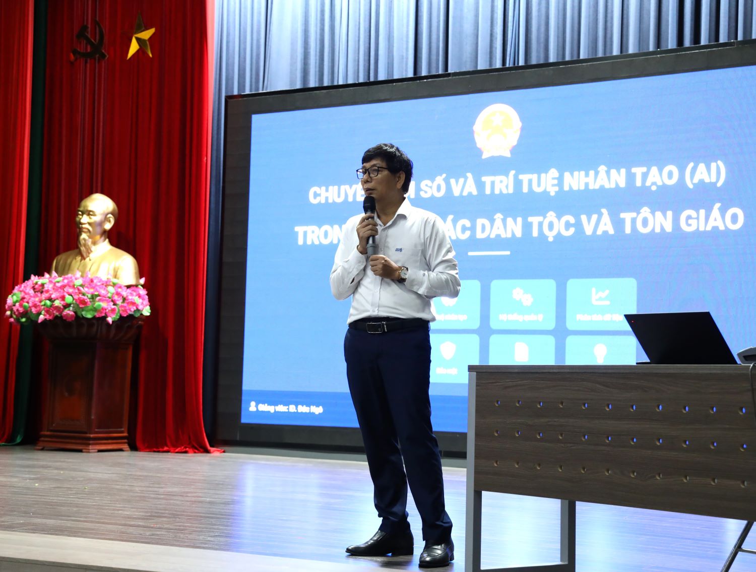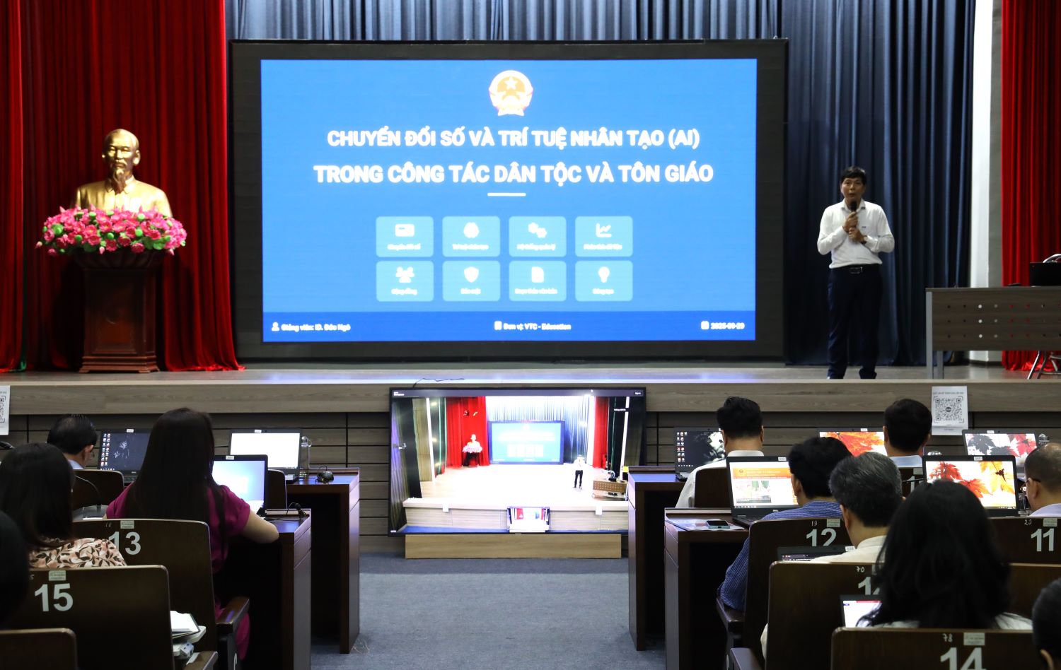 Lớp bồi dưỡng với mục tiêu chia sẻ, cung cấp, nâng cao nhận thức, kiến thức, kỹ năng về chuyển đổi số và ứng dụng trí tuệ nhân tạo hướng tới xây dựng tư duy đổi mới sáng tạo, phong cách làm việc hiện đại, vận dụng một cách hiệu quả các giải pháp công nghệ trong cải thiện năng suất, chất lượng trên các lĩnh vực quản lý nhà nước của Bộ Dân tộc và Tôn giáo.