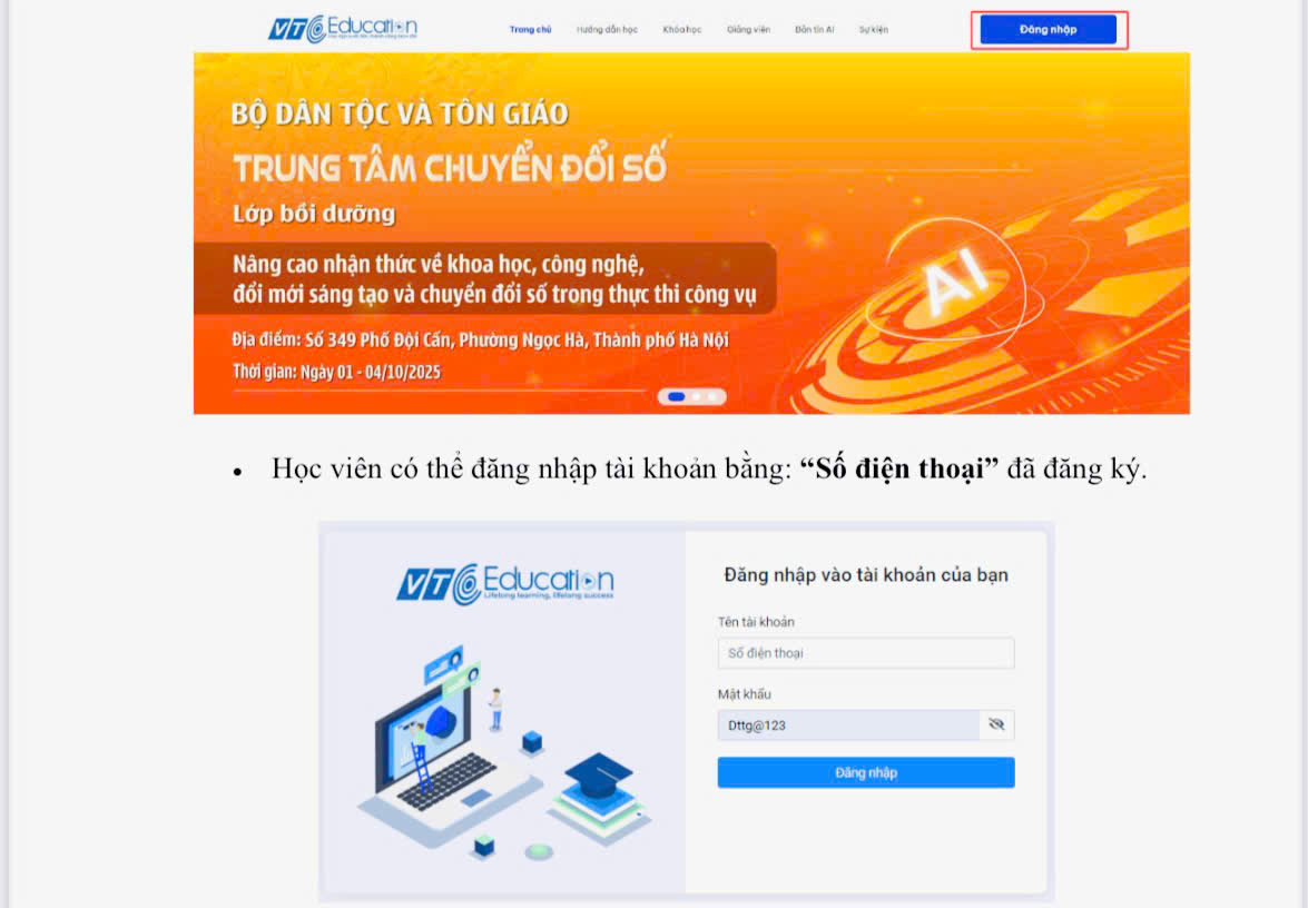 Lớp bồi dưỡng được tổ chức thực hiện theo hình thức kết hợp trực tiếp và trực tuyến. Theo đó, các học viên học trực tuyến trên LMS trong vòng 07 ngày từ ngày 25/9 đến ngày 2/10/2025, sử dụng nền tảng đào tạo trực tuyến VTC Education và học trực tiếp trong vòng 04 ngày cho 02 lớp.