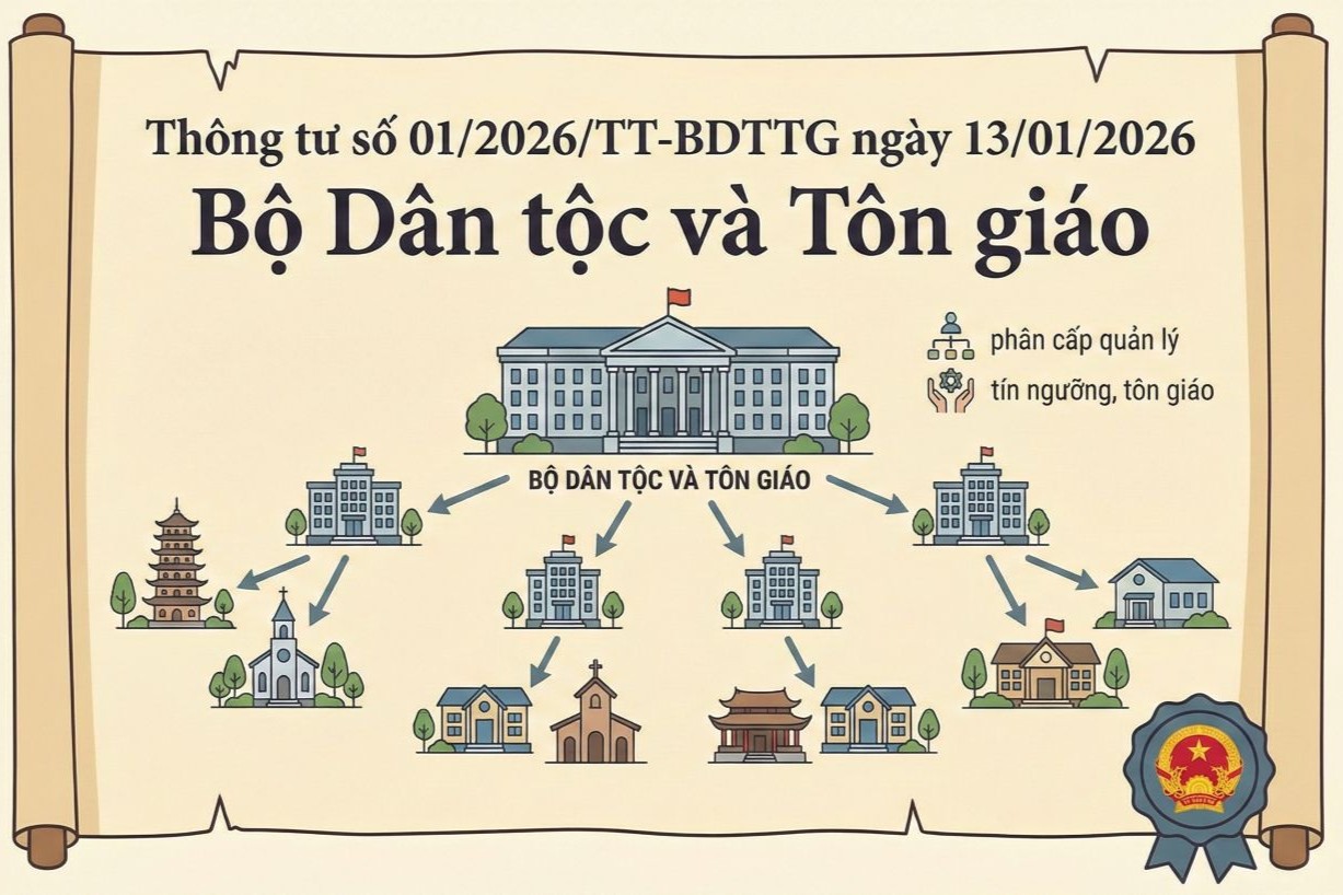 Bộ Dân tộc và Tôn giáo vừa ban hành Thông tư 01/2026/TT-BDTTG ngày 13/01/2026 quy định phân cấp một số nhiệm vụ quản lý nhà nước về tín ngưỡng, tôn giáo của Bộ.