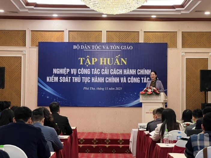 Từ ngày 21-23/11, tại tỉnh Phú Thọ, Bộ Dân tộc và Tôn giáo tổ chức Lớp tập huấn nghiệp vụ công tác cải cách hành chính (CCHC), kiểm soát thủ tục hành chính (TTHC) và công tác ISO năm 2025. Thứ trưởng Bộ Dân tộc và Tôn giáo Nông Thị Hà dự và phát biểu chỉ đạo tại Lớp tập huấn.
