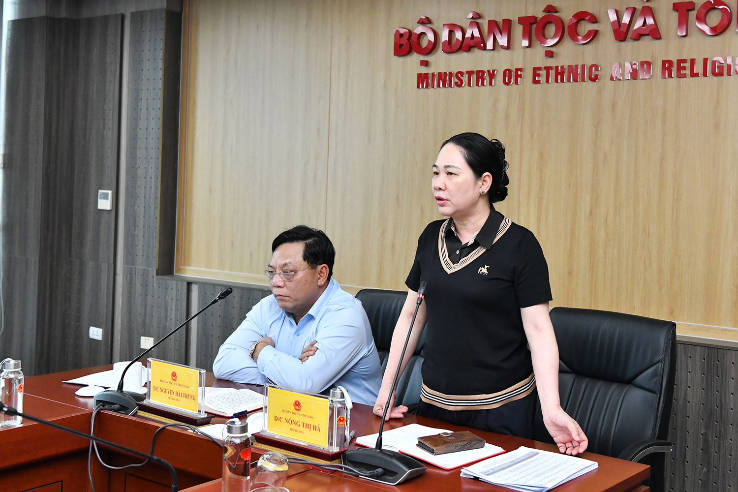 Thứ trưởng Bộ Dân tộc và Tôn giáo Nông Thị Hà phát biểu chỉ đạo tại cuộc họp