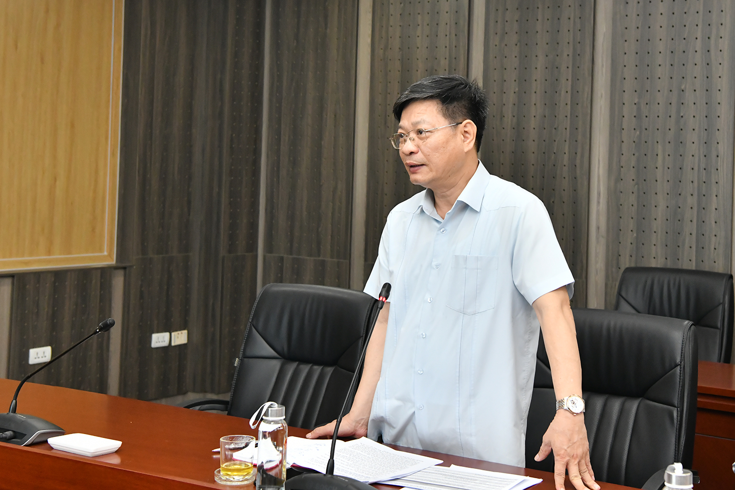 Giám đốc Học viện Dân tộc Bùi Tôn Hiến, phát biểu, báo cáo tại cuộc họp