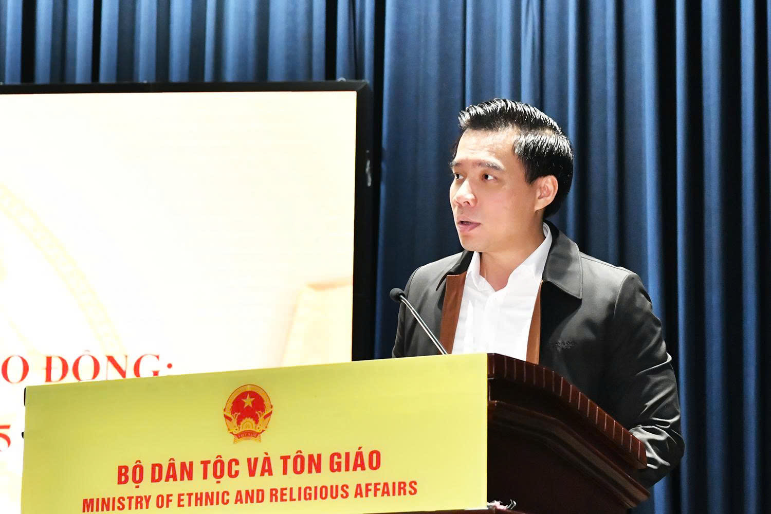 Phó Chánh Văn phòng Bộ Dân tộc và Tôn giáo Nguyễn Tiến Thành trình bày Báo cáo tóm tắt kết quả công tác năm 2025, nhiệm vụ công tác năm 2026 của Bộ