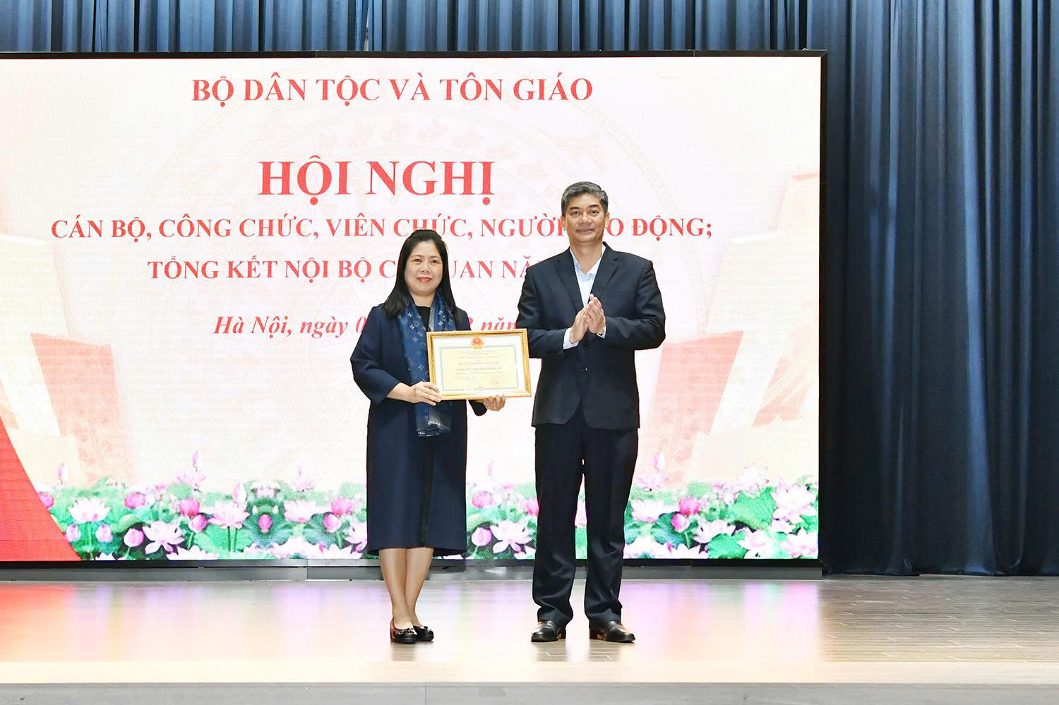 Ủy viên Ban Thường vụ, Trưởng ban Tuyên giáo Dân vận Đảng ủy Bộ, Thứ trưởng Nông Thị Hà trao Danh hiệu Tập thể lao động tiên tiến năm 2025 cho Vụ Tổ chức cán bộ, Vụ Kế hoạch-Tài chính, Văn phòng Đảng ủy Bộ, Ban Tôn giáo Chính phủ, Trường Dự bị Đại học Dân tộc Sầm Sơn; Vụ Tuyên truyền công tác dân tộc và tôn giáo