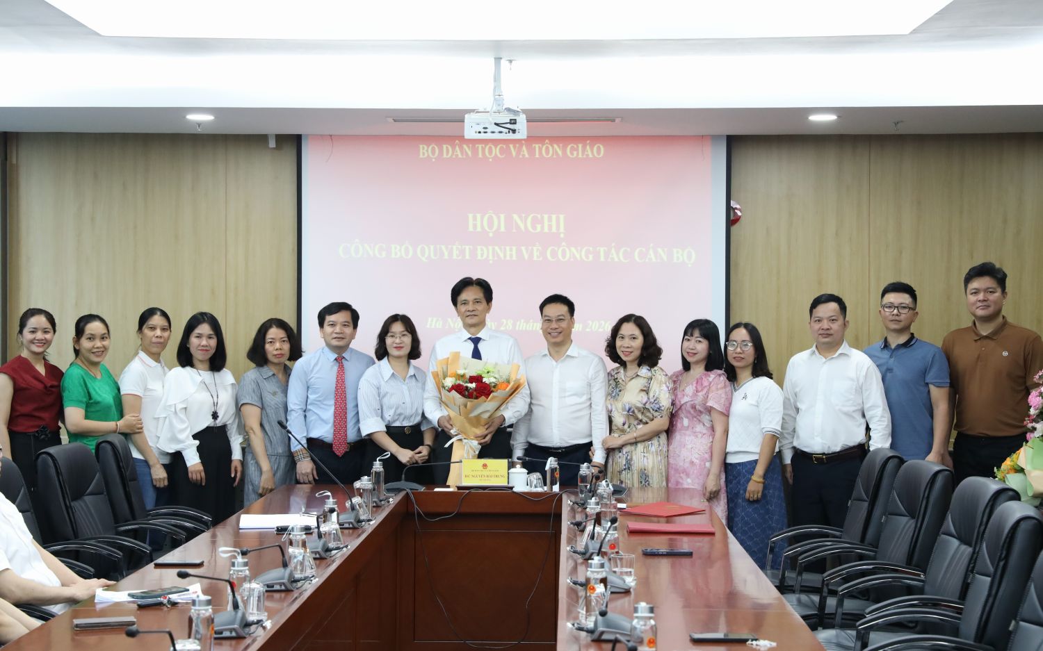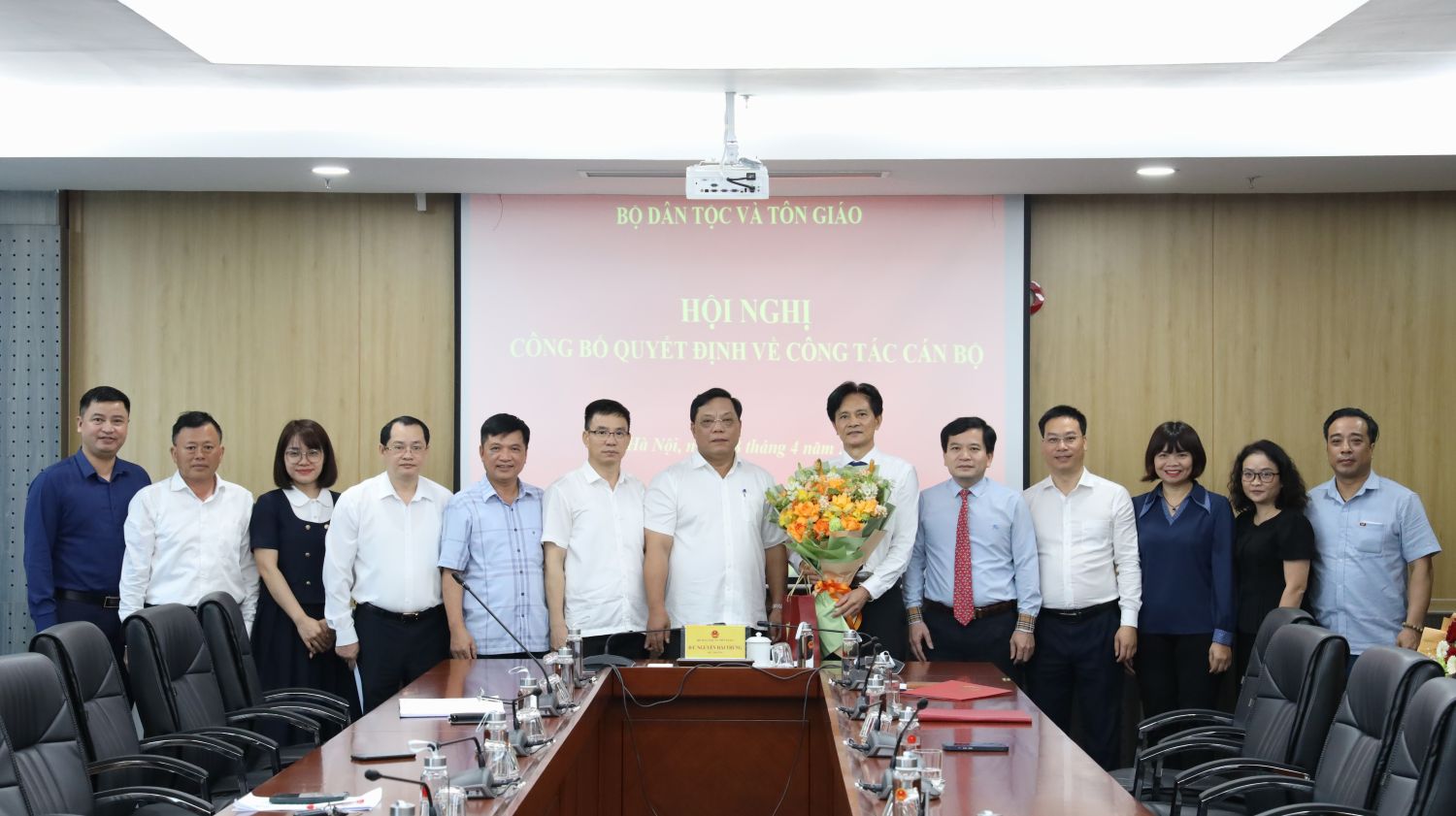 Tập thể lãnh đạo, viên chức Nhà khách Dân tộc tặng hoa chúc mừng đồng chí Bùi Thiện Lạc
