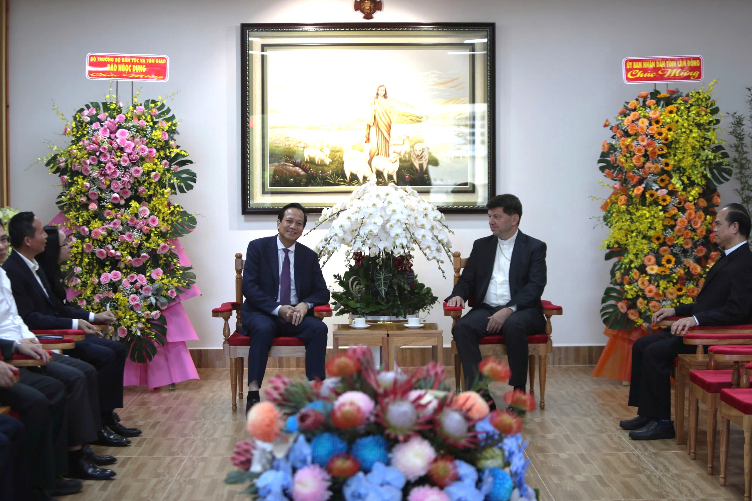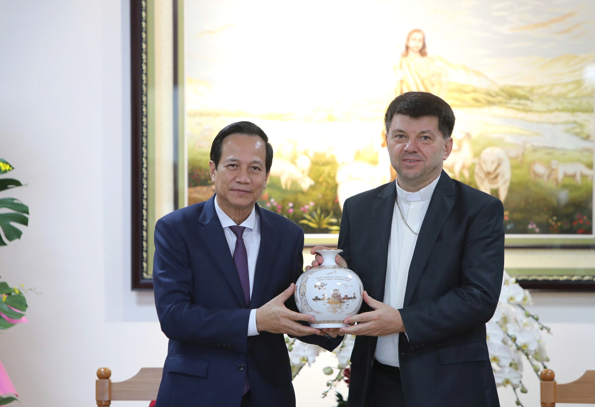Bộ trưởng bày tỏ vui mừng trước sự phát triển tích cực trong quan hệ Việt Nam – Vatican, khẳng định chính sách nhất quán của Đảng và Nhà nước Việt Nam là tôn trọng, bảo đảm quyền tự do tín ngưỡng, tôn giáo của mọi người; tạo điều kiện thuận lợi để các tổ chức tôn giáo hoạt động trong khuôn khổ pháp luật. Bộ trưởng đánh giá cao vai trò của Giáo hội Công giáo Việt Nam trong việc đồng hành cùng dân tộc, phát huy các giá trị nhân văn, đạo đức, tích cực tham gia các hoạt động xã hội, từ thiện, góp phần xây dựng và phát triển đất nước.