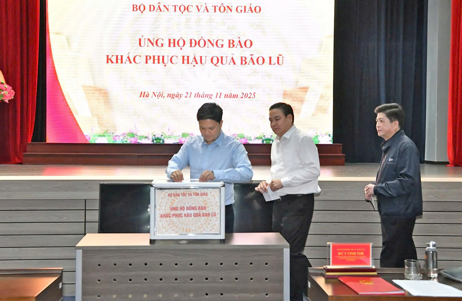 5 giờ trước | Lượt xem: 159 In bài viết |Thực hiện theo công điện của Thủ tướng Chính phủ, hưởng ứng lời kêu gọi của Ủy ban Trung ương Mặt trận Tổ quốc Việt Nam và ý kiến chỉ đạo của Ủy viên Trung ương Đảng, Bộ trưởng Bộ Dân tộc và Tôn giáo Đào Ngọc Dung, ngày 21/11/2025, tại trụ sở Bộ đã diễn ra chương trình vận động, quyên góp ủng hộ đồng bào khắc phục hậu quả bão lũ.
