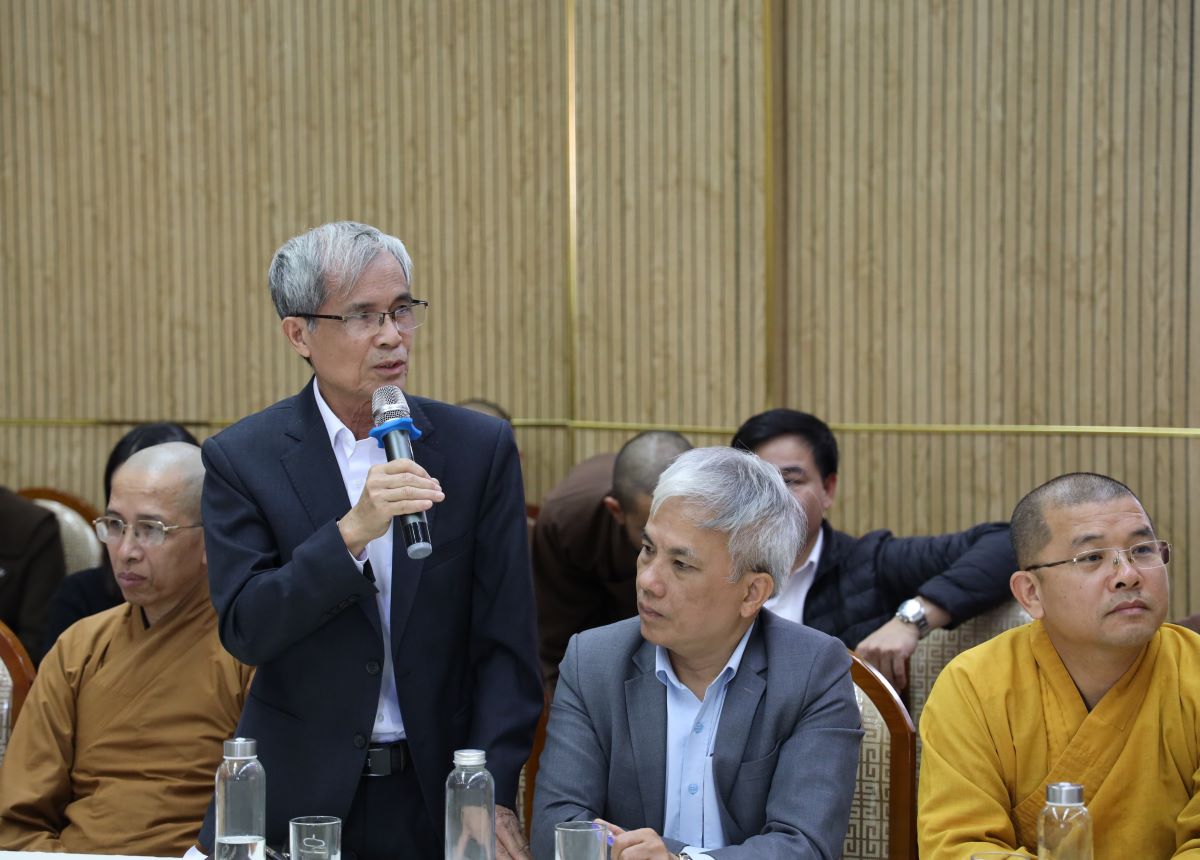 Thượng tọa Thích Đạo Phong, Phó Trưởng ban Ban Trị sự Giáo hội Phật giáo Việt Nam Thành phố Hà Nội phát biểu tại Hội nghị