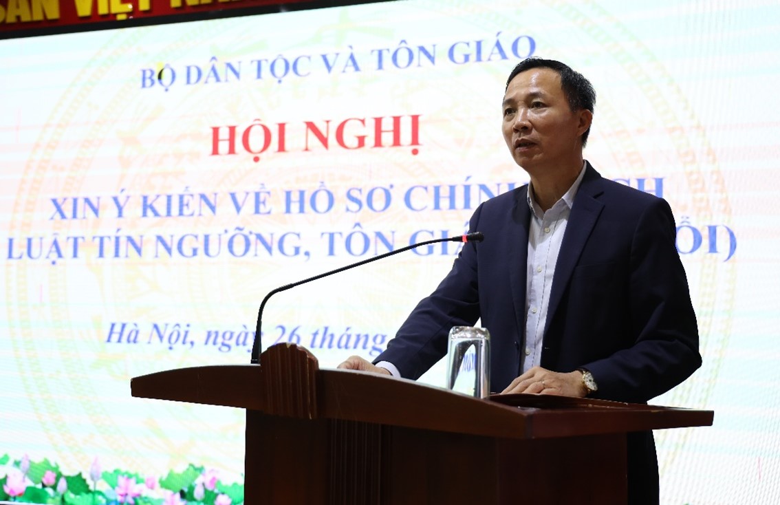 Thứ trưởng cũng nhấn mạnh việc hoàn thiện pháp luật về tín ngưỡng, tôn giáo bảo đảm tiếp tục thể chế hoá chủ trương và đường lối của Đảng, bảo đảm quyền tự do tín ngưỡng, tôn giáo; thúc đẩy công khai, minh bạch trong hoạt động của cơ quan nhà nước; đáp ứng nhu cầu hoạt động tín ngưỡng, hoạt động tôn giáo của cá nhân, tổ chức; đa dạng hóa hình thức hoạt động tín ngưỡng, hoạt động tôn giáo gắn với đẩy mạnh cải cách thủ tục hành chính, chuyển đổi số, xây dựng Chính phủ điện tử tiến tới Chính phủ số và mô hình tổ chức của các cơ quan sau sắp xếp.