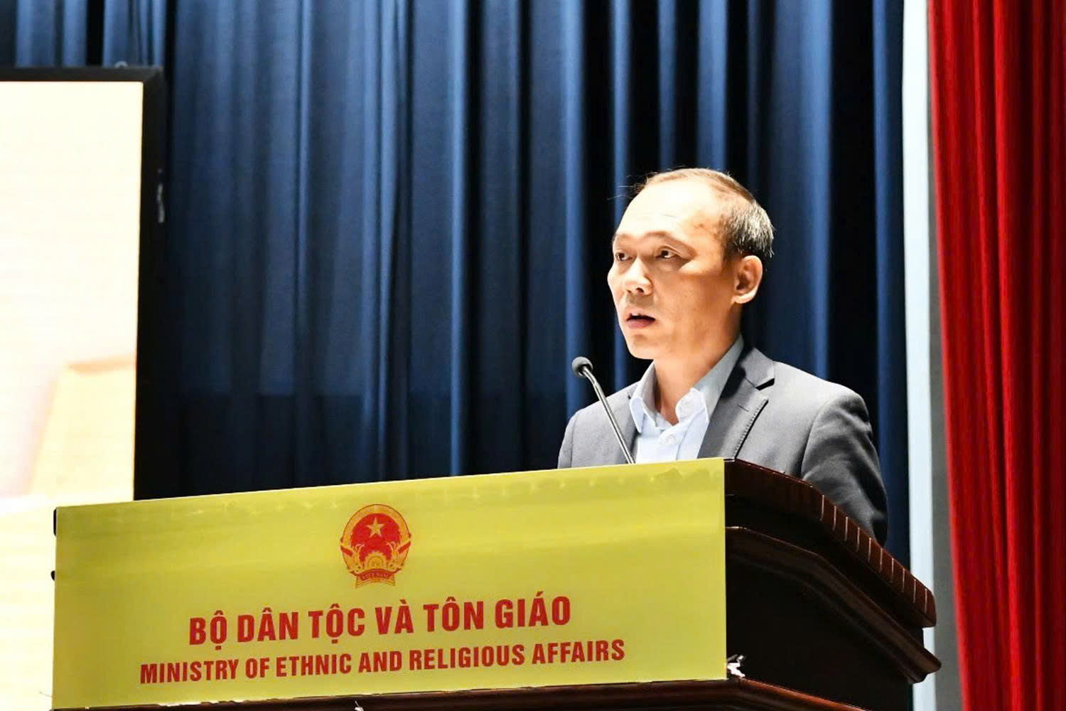 Giám đốc Sở Dân tộc và Tôn giáo tỉnh Nguyễn Văn Dưng phát biểu tại buổi gặp mặt