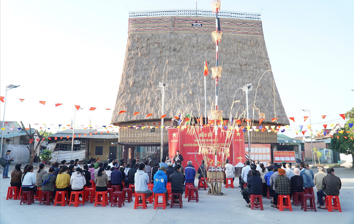 Cử tri vùng có đạo, thôn Kon Rờ Bang 2 và thôn Phương Quý 1, xã Ngọk Bay, tỉnh Quảng Ngãi bỏ phiếu bầu cử