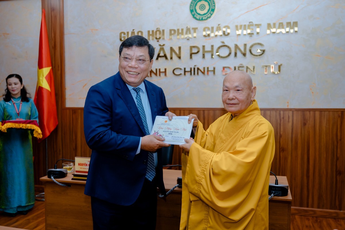 Thay mặt Trung ương GHPGVN, Hòa thượng Thích Thiện Nhơn, Chủ tịch HĐTS trân trọng cảm ơn sự quan tâm, tình cảm và những lời chúc mừng tốt đẹp của Thứ trưởng Bộ Dân tộc và Tôn giáo cùng đoàn công tác dành cho Giáo hội nhân dịp Xuân mới.