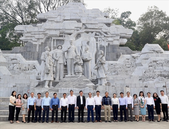 Đoàn công tác chụp ảnh lưu niệm tại tượng đài “Bác Hồ với Nhân dân các dân tộc tỉnh Tuyên Quang”